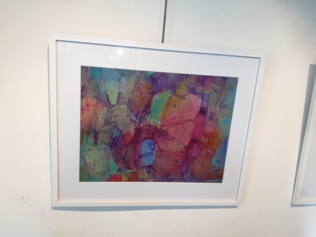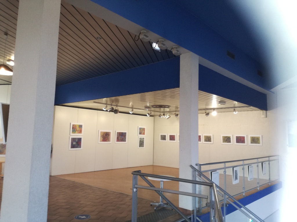 Les murs blancs et les éclairages professionnels mettent en valeur les peintures de Christine. C'est une belle exposition.